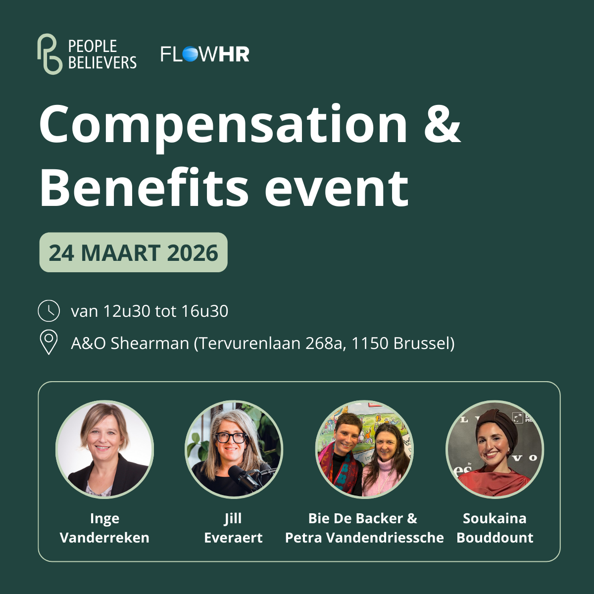Op 24 maart 2026 organiseerde FlowHR samen met People Believers een exclusief Compensation & Benefits event rond loontransparantie en toekomstgericht belonen. Tijdens deze interactieve namiddag deelden vijf experten – Inge Vanderreken, Soukaina Bouddount, Jill Everaert, Bie De Backer & Petra Vandendriessche – inzichten vanuit juridische, strategische en praktische invalshoeken, met ruimte voor debat en kennisuitwisseling tussen HR-professionals.